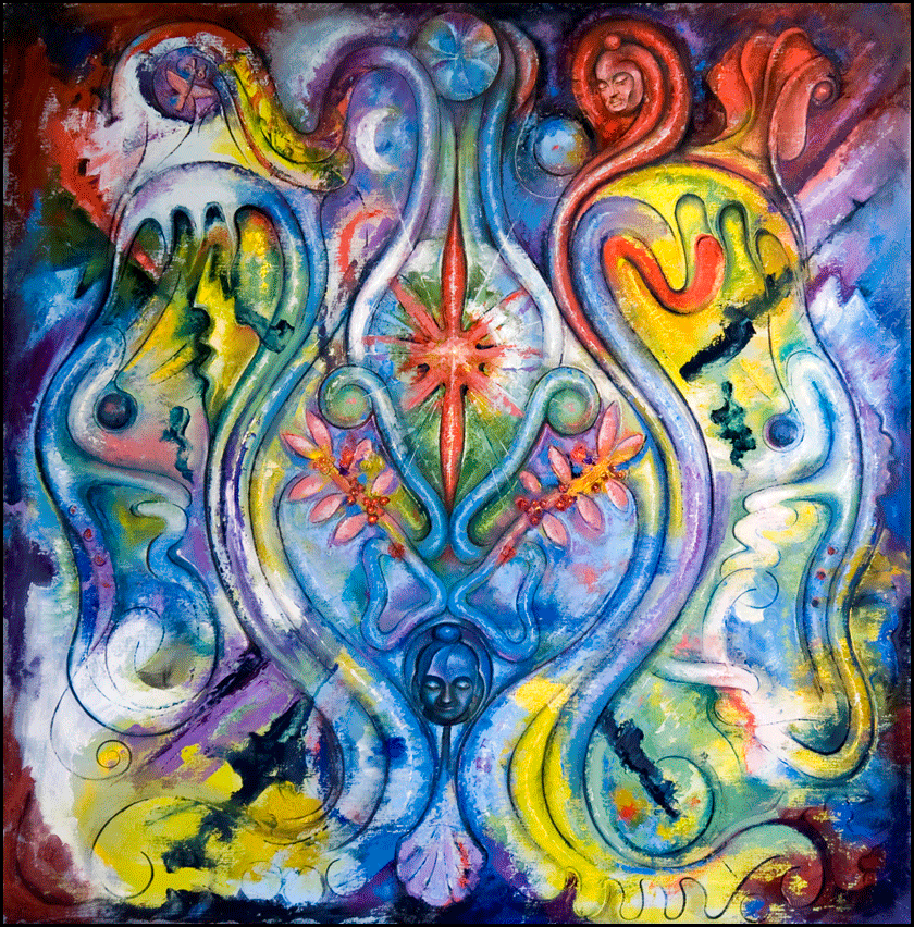 In his earlier years Ringstaff was a successful portrait artist and was also acclaimed for his historical sketches of Florida, many of which hang in public buildings and private collections in Glades County where he lives and paints. But today his free style is more complex and thought provoking. Ringstaff has won recognition and awards in national art shows and national/international art publications, including Art Buzz and the prestigious International Contemporary Masters Vol. IV. Ringstaff’s works Blood Wedding, Peyote and Serpent and the Cross were recently exhibited in a group show at the Southern Nevada Museum of Fine Art. His Cosmic Dancers was exhibited at the Brickbottom Gallery in Massachusetts.